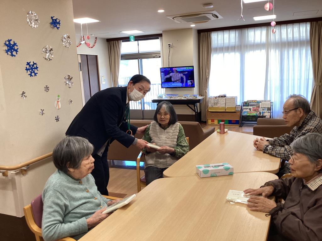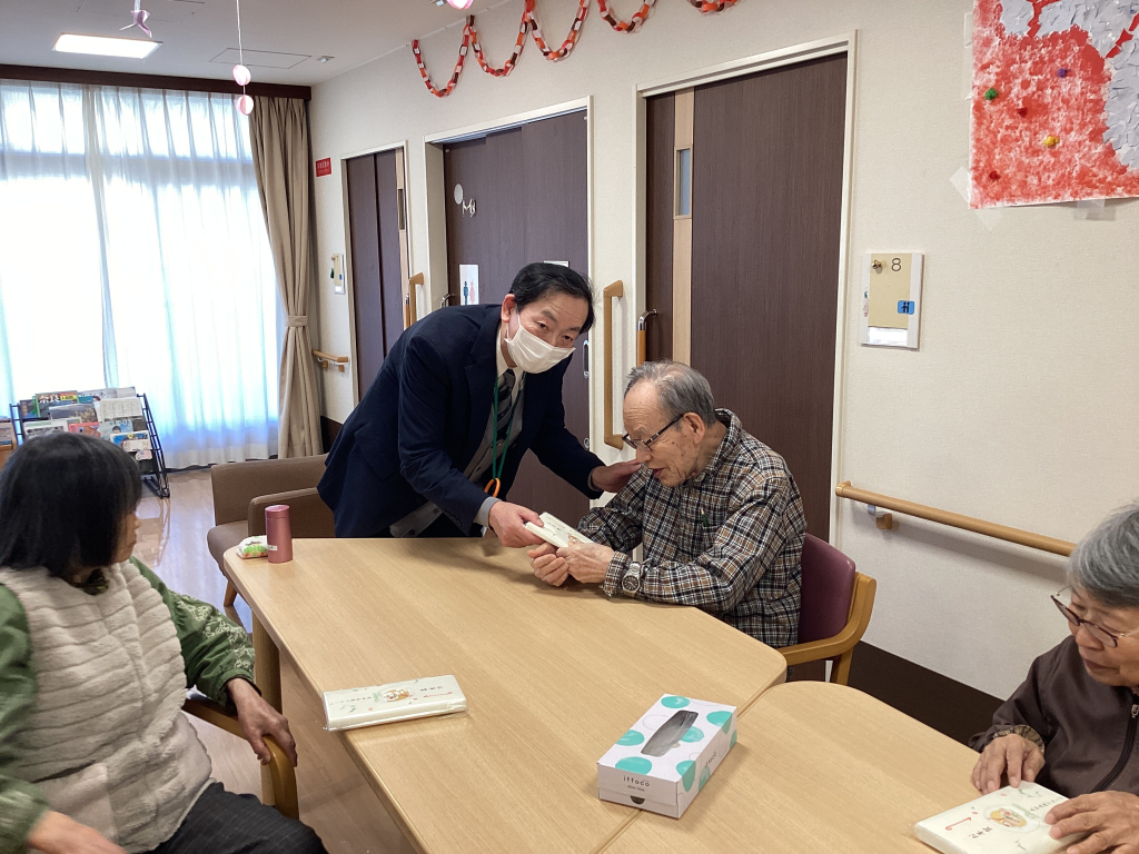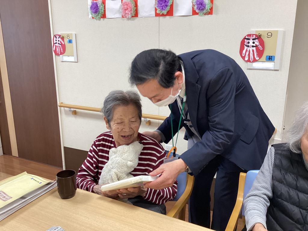 入居者様一人一人に馬の刺繍が入ったタオルを贈呈させていただきました。