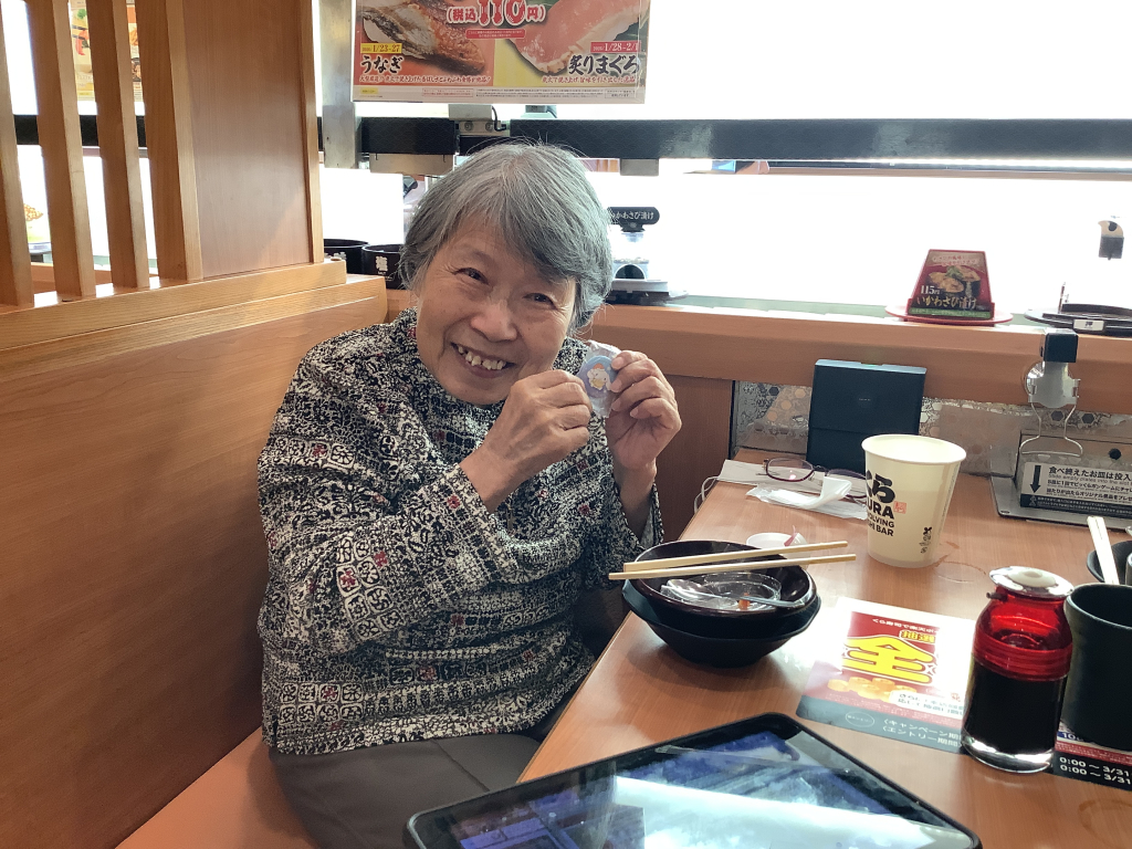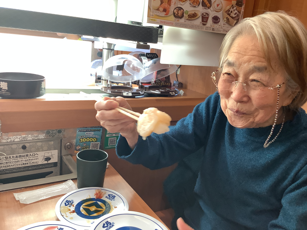 事前に入居者様にお聞きして、今回はくら寿司です。