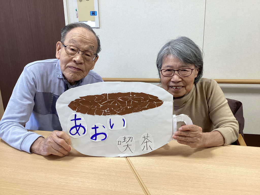 あおい喫茶のPOPと一緒に写真撮影。皆さんいい笑顔でポーズをとってくださいました。
