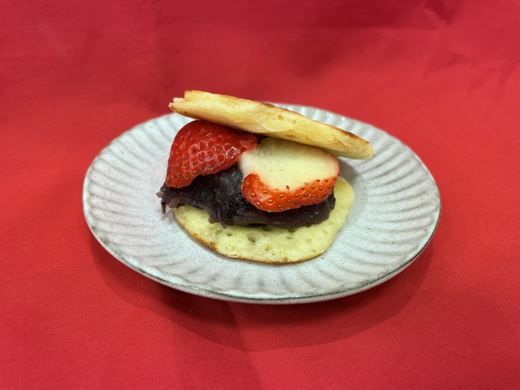 完成したいちごどら焼きを前に、「きれいだね」「食べるのがもったいない!」という声も聞かれましたが、ひと口食べると「おいしい!」と笑顔が広がりました😋✨