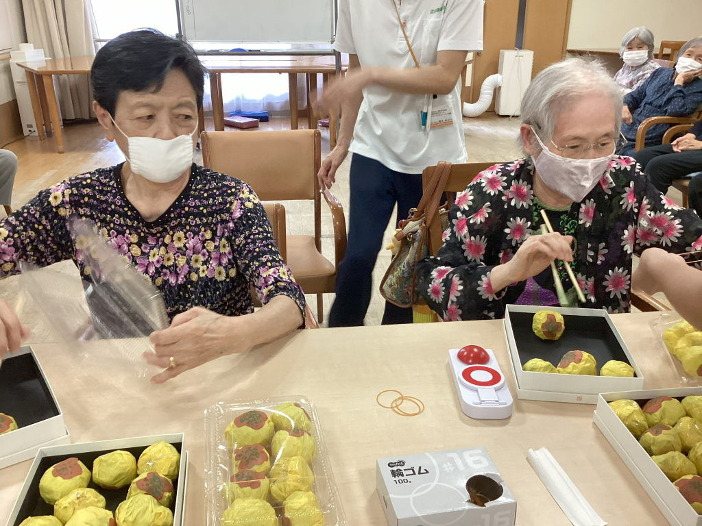 ご利用者様を2チームに分けて、どちらが早くできるか競争しています☆
