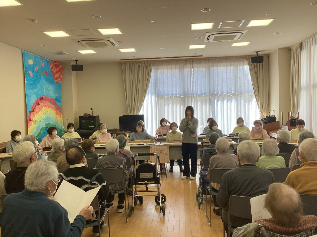ボランティアさんと皆様で歌謡曲や唱歌を歌い、最後はお琴の演奏を聴いて楽しまれました。