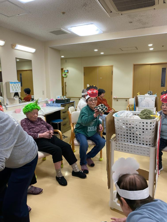 グループホーム鳳凰槇島では、2月3日(火)に、豆の代わりにお手玉を使った「ユニット対抗・お手玉投げ大会」を開催しました。