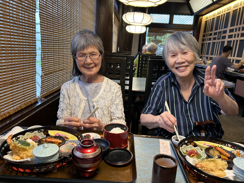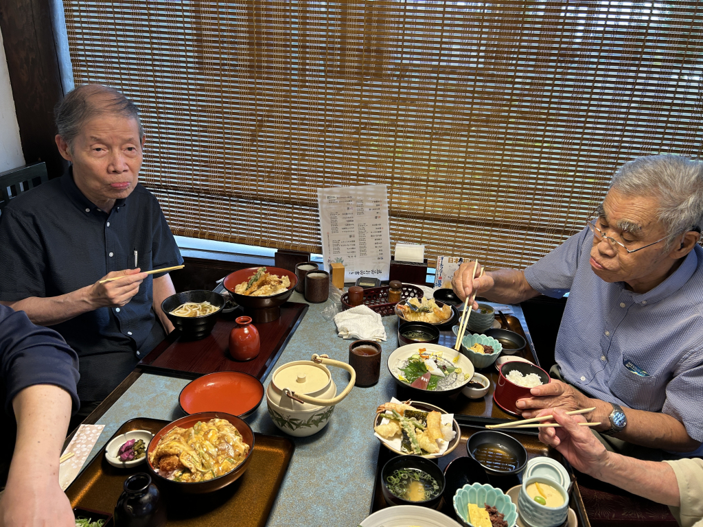 昼食は、お刺身や天ぷら、蕎麦など豪華なお食事を召し上がられ、