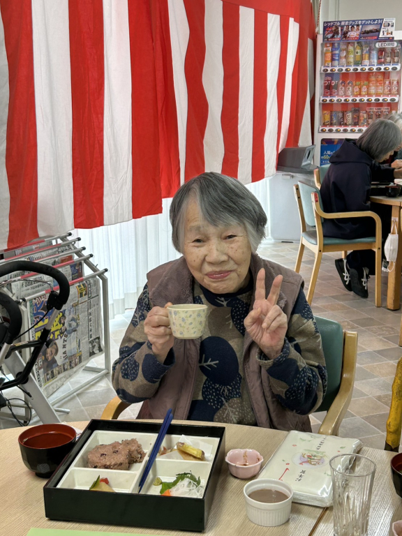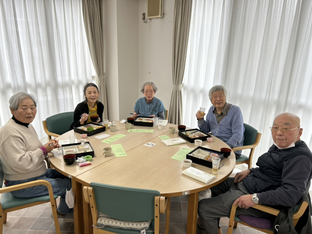 施設長の新年の挨拶のあと、ノンアルコールビールで乾杯して