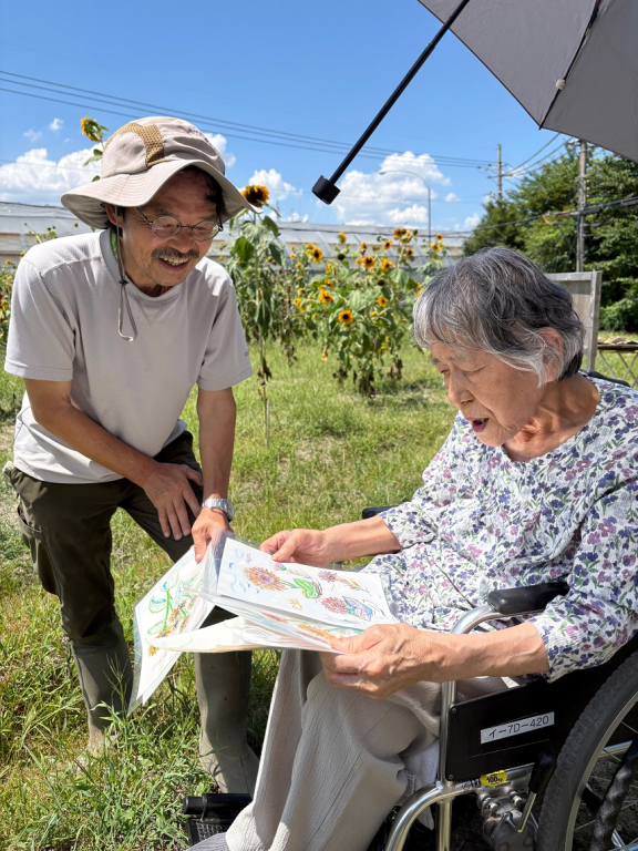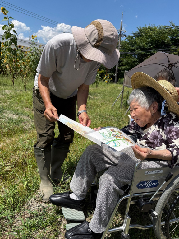 ひまわり畑を楽しませてもらったお礼にと、ご利用者からひまわりの絵をプレゼントしました。