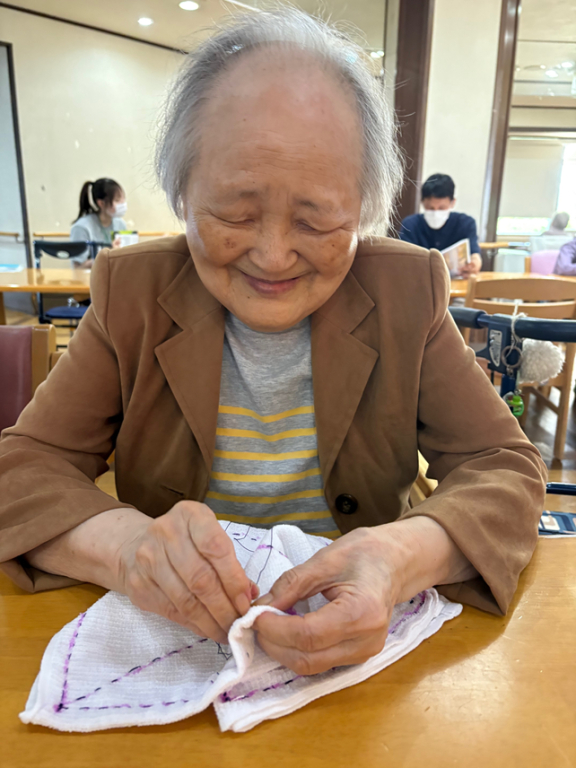 「ぞうきん?ええよ、なんぼでも持っといで~」「この針で縫うんか?もっと長いのないの?指抜きあったらもっとサッサと縫えるわ」