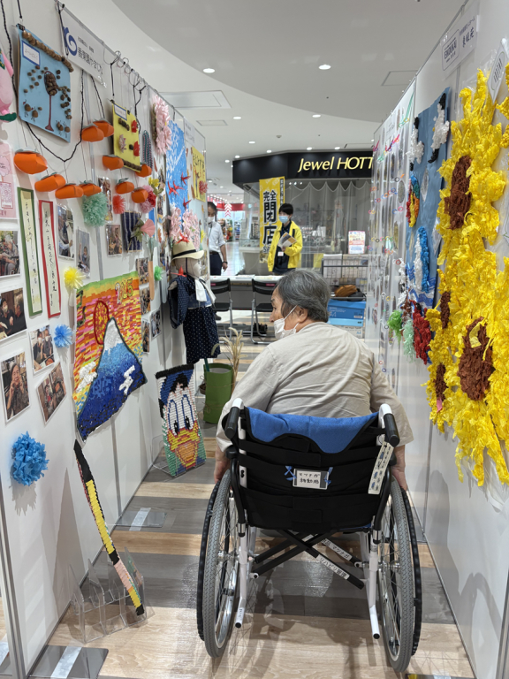 街なか作品展は、山科区市老協地域貢献プロジェクトが「山科地域の普段介護に関心のない世代にも広く介護について考えるきっかけや、介護施設のイメージをポジティブ転換するきっかけになってほしい」と、ご利用者の作品展と介護相談会を企画したものです。