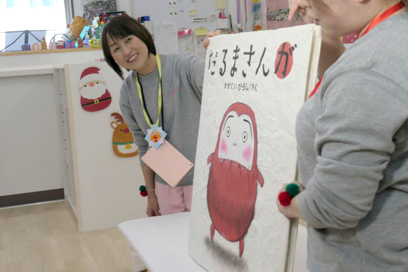 そして、子どもたちが楽しみにしていた保育士さんたちの出し物! 今回は、保育士さん手作りの大きな大きな絵本が登場し、迫力満点の読み聞かせに、子どもたちは目を輝かせていました。