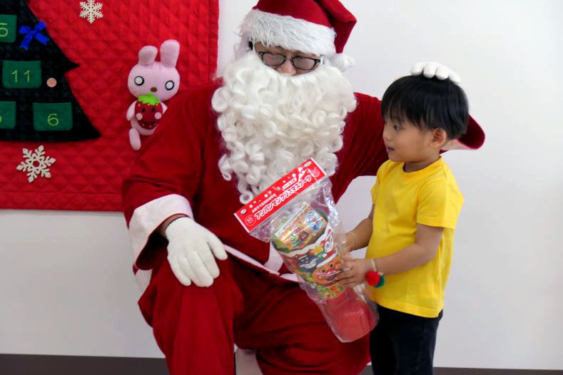 演奏の後は、いよいよサンタさんからのプレゼントタイム! 一人ひとりに手渡されるプレゼントに、子どもたちは満面の笑みを浮かべ、サンタさんに「ありがとう!」と元気いっぱいに伝えていました。