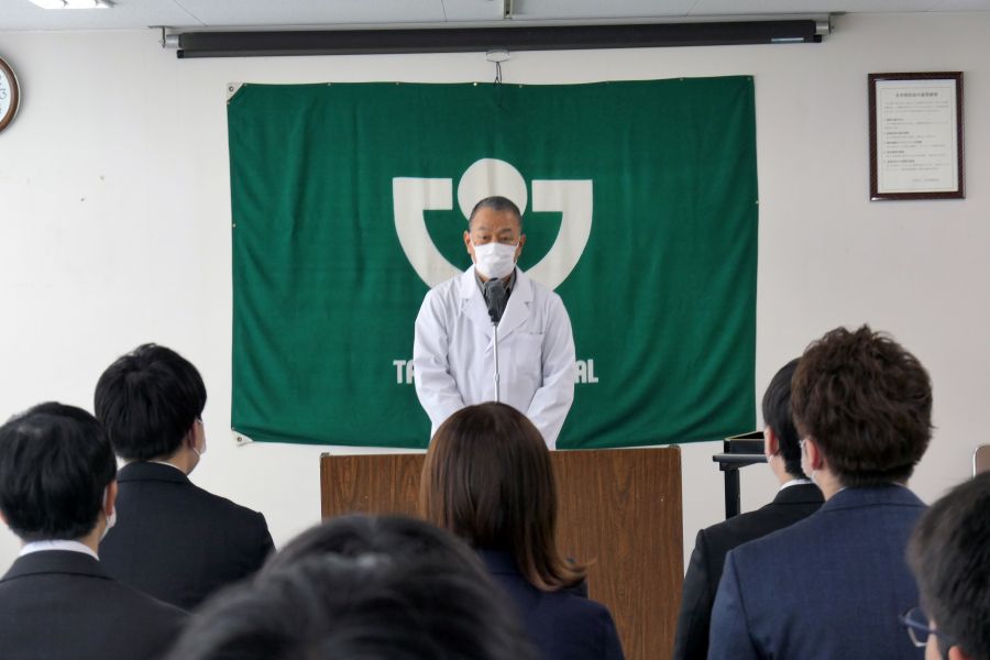 修了式では、院長より一人ひとりに修了証書が授与され、温かい祝福の言葉が贈られました。 院長からは、医療はチームで行うものであり、看護師や薬剤師、検査技師、事務職員など、様々な職種の人々と協力し、お互いを尊重し合うことの大切さが語られました。 特に、「思いやり」とは相手の立場に立って考えることであり、医療チームのメンバーがお互いを思いやる気持ちを持つことの重要性が強調されました。