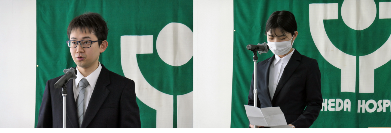 在院研修医を代表して、1年次研修医の中尾先生からは、修了する先輩方への感謝と、先輩方の背中を追いかけて学んだこと、そしてその学びを受け継ぎ、一歩ずつ進んでいく決意が述べられました。