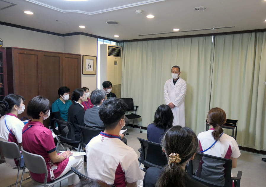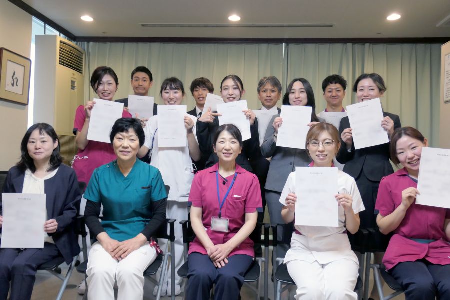 院長からは、「特定行為は、医療安全上非常に重要な役割を担います。常に慎重な姿勢を忘れず、疑問があれば必ず確認するよう心がけてください。また、ご自身の経験を後輩の指導に活かし、良いサイクルを築いていってほしい」と激励の言葉が贈られました。