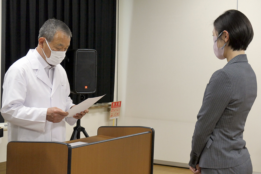 一山院長は式辞で、「新しいことを始める時は不安だと思いますが、皆さんは多くの知識を習得する一歩を踏み出しました。自ら選んだ道を悔いのないよう学んでください」と、研修生を激励しました。
