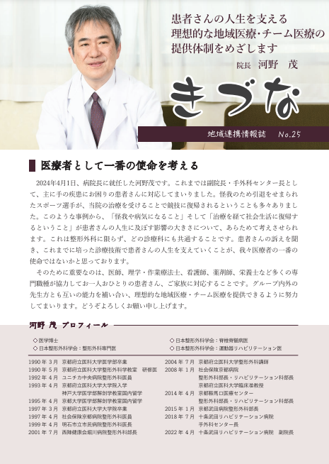 2024年4月1日より新しく病院長に就任しました河野院長を紹介しています。