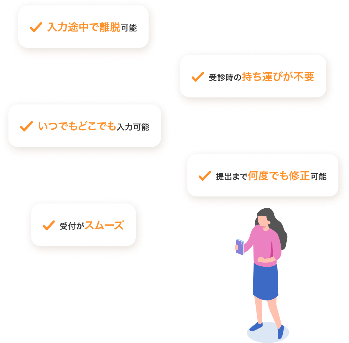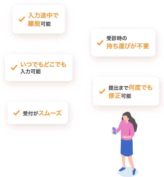 スマホで問診入力をすることで、下記のデメリットを解消することができます。