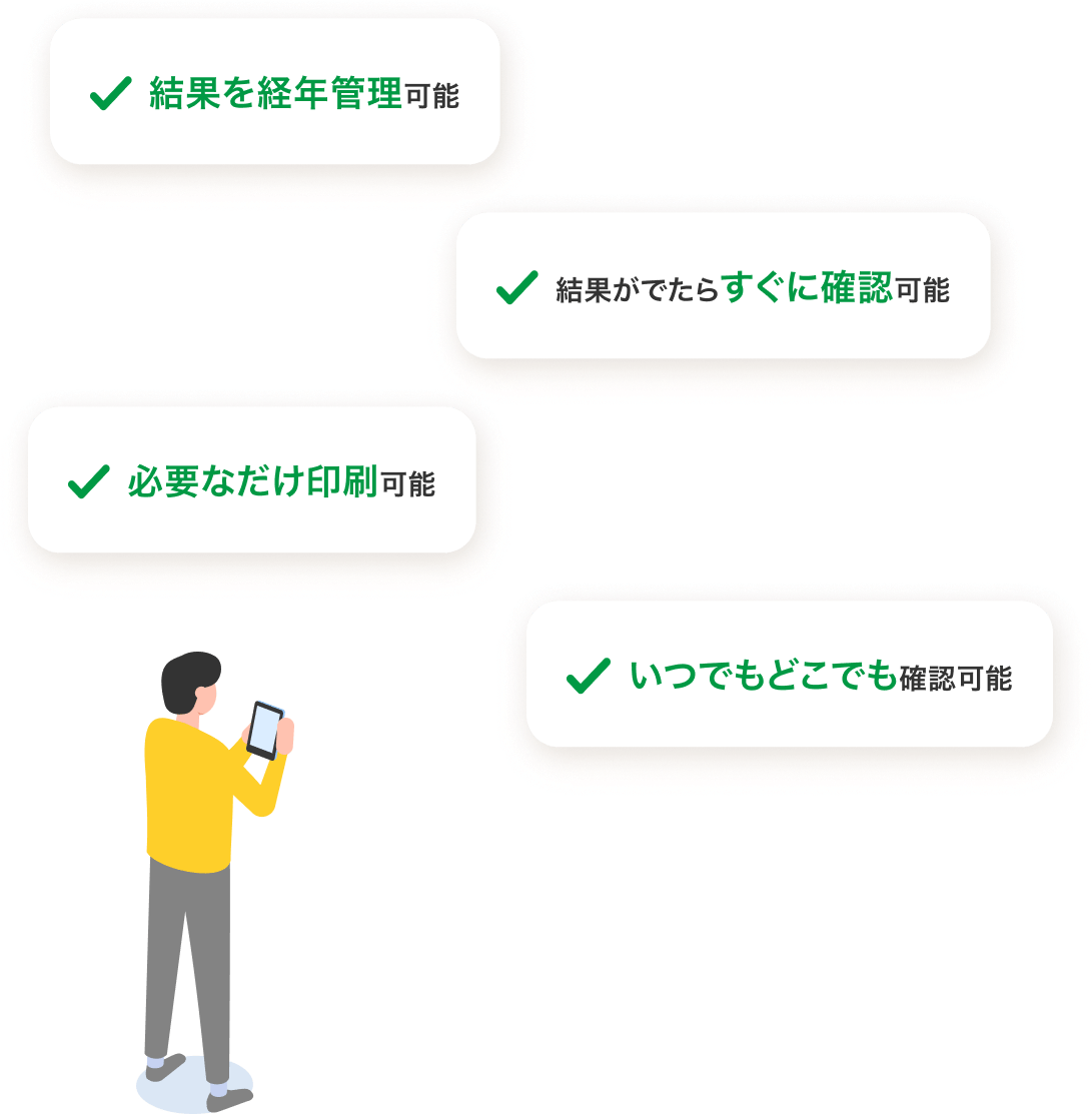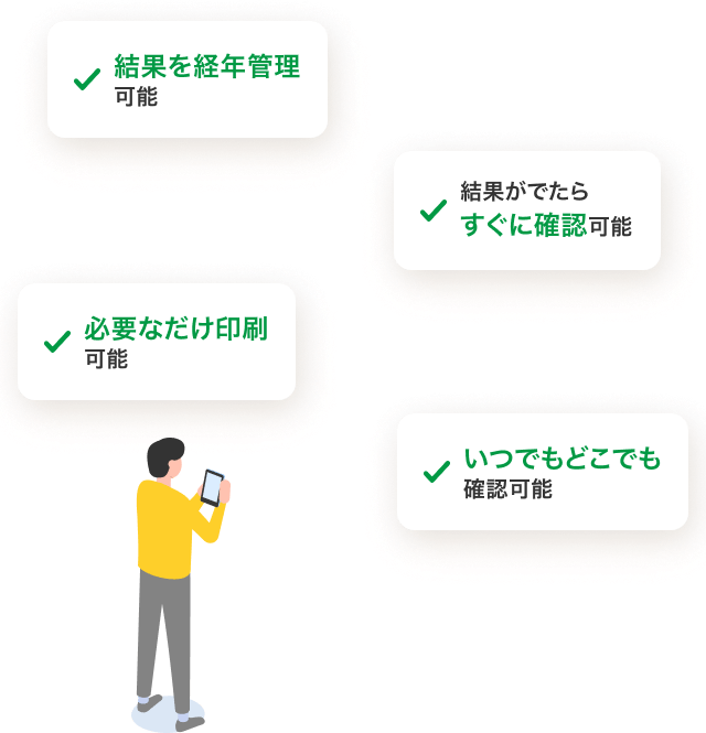 従来の紙の結果と同内容のPDFデータをダウンロードしていただいたり印刷していただけます。
