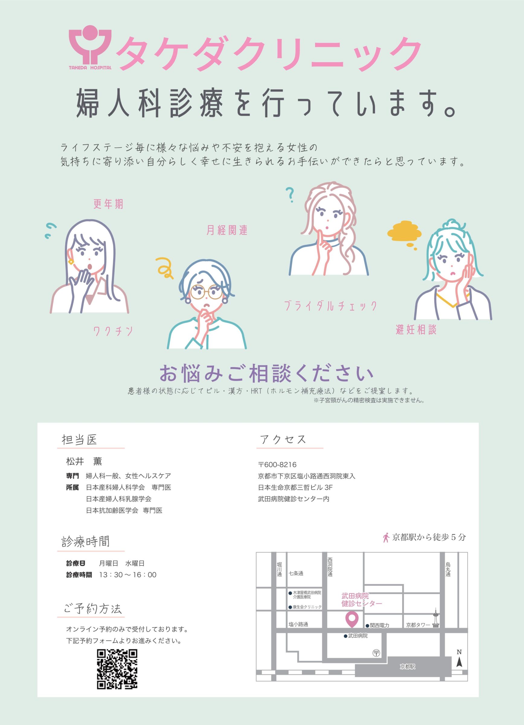 武田病院健診センター内で婦人科診療[タケダクリニック]を行っております。