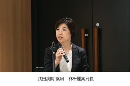 講演8は、康生会武田病院薬局の林千麗薬局長が座長を務め、同薬局の紺谷智子副主任が「再発しないために! お薬の飲み方のコツ」と題し講演しました。