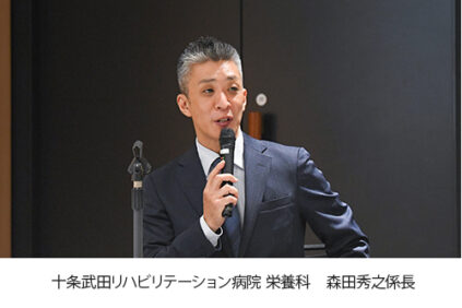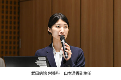 講演7は、十条武田リハビリテーション病院栄養科の森田秀之係長が座長を務め、康生会武田病院栄養科の山本遥香副主任が「できることから始めませんか? 無理なく続ける中性脂肪・コレステロール対策」と題し講演しました。