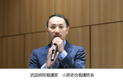 講演5は、康生会武田病院脳神経外科の定政信猛部長が座長を務め、同院看護部の小原史也看護師長が「脳卒中意思決定支援 ~あなたの意思を支えます~」と題し講演しました。