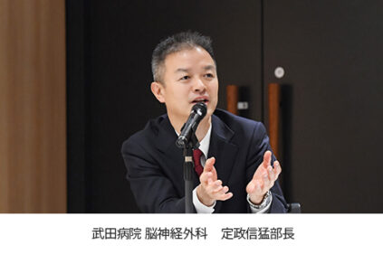 また定政部長は、「当院は今年の10月からSCU(脳卒中ケアユニット)を従来の6床から9床に拡大し、より多くの患者さんに対応できるようになりました。とくに再発が多い疾患ですので、回復期での治療が終わってからも、脳卒中に精通した医療機関を日頃から受診することが重要です」と会場に呼びかけました。