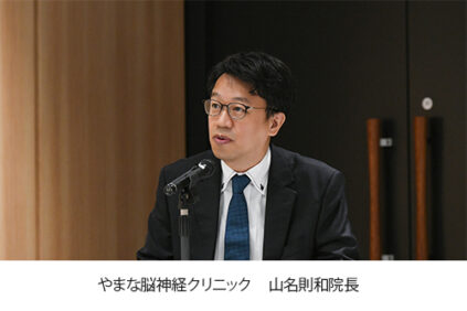 講演1は、やまな脳神経クリニックの山名則和院長が座長を務め、康生会武田病院脳神経外科の定政信猛部長が「脳卒中の最新治療」と題し講演しました。