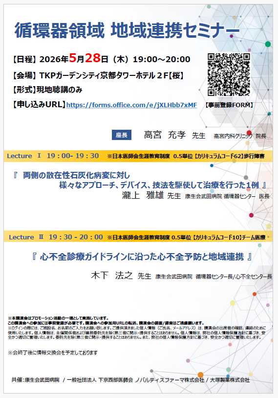 以下の要領にて「循環器領域 地域連携セミナー」を開催いたします。奮ってご参加ください。