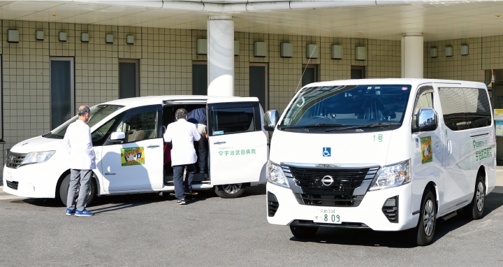 当院はJR宇治駅の至近距離にあり交通のアクセスが良好ですが、年々高齢化する中で体力が低下した患者さんや合併症により自力通院が困難な患者さんが増えてきています。これに対応して専用の送迎車による送迎サービスにも力を入れ、居住地域や全身状態を考慮して送迎を行っています。